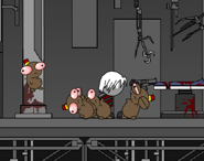 Unarmed again, but with a new model, suicide Stinky Bean, smaller (1/2 human size), whiter and with mouth, they explote at contact. It may be an improve in System Corp's expermients with bio weapons